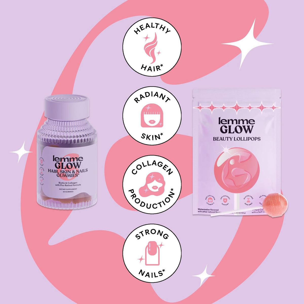 - Glow Gummies support healthy hair, radiant skin & strong nails