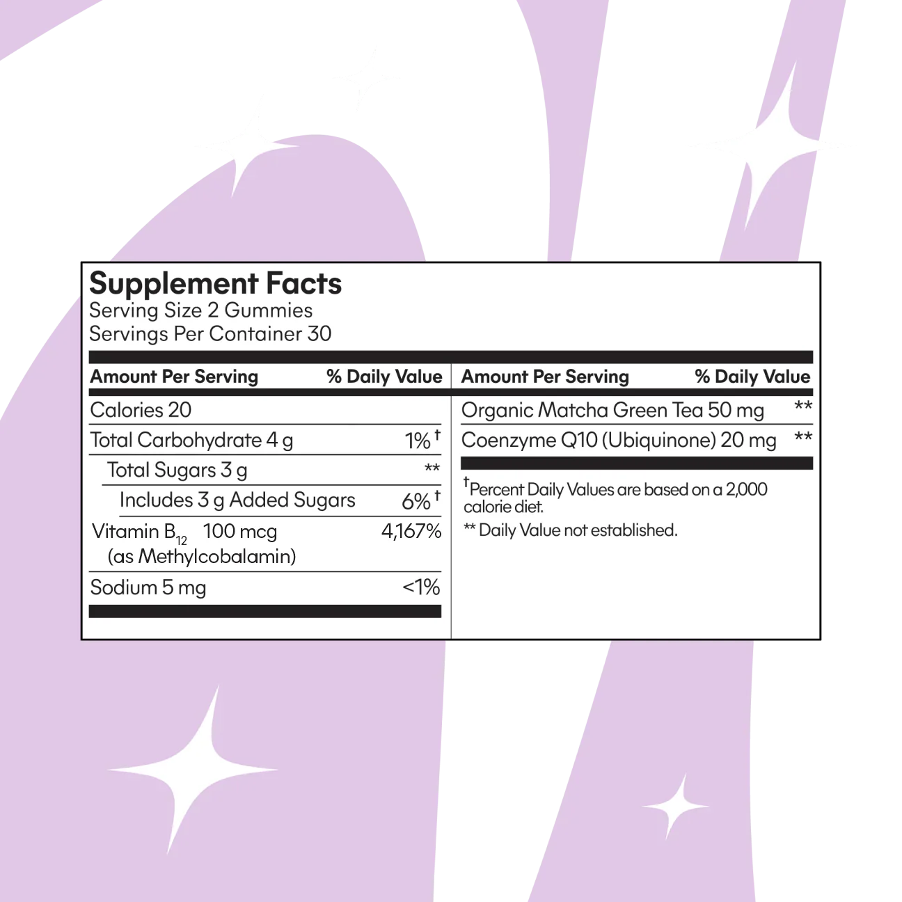 Name a better trio: Matcha has incredible superfood benefits, while Vitamin B12 and CoQ10 support energy production and metabolism.*