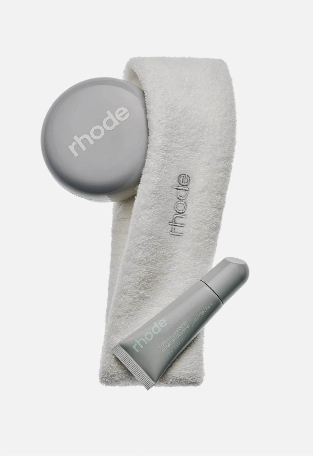 Two rhode masks and a headband to match. Our new set bundles Caffeine Reset and Peptide Lip Boost with the limited edition rhode headband made of cozy cotton terry. Caffeine Reset is a sculpting cream mask to leave you looking lifted, less puffy, and more awake in minutes. Peptide Lip Boost is a plumping lip mask that enhances volume instantly and over time.